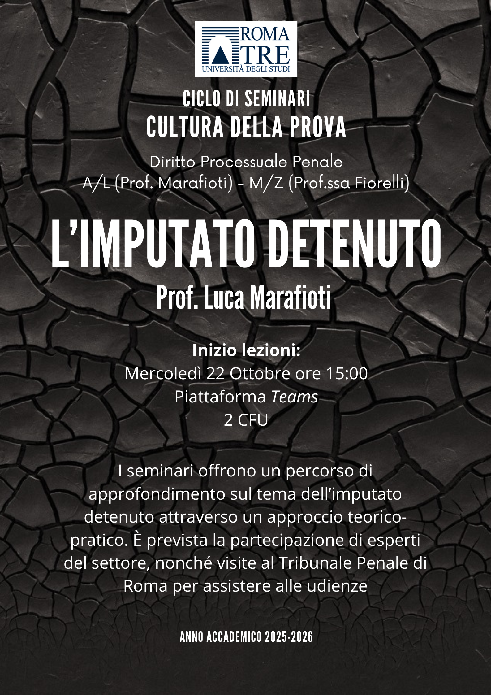 Ciclo di Seminari "Cultura della prova" - Cattedre di Diritto processuale penale A/L (Prof. Marafioti), M/Z (Prof.ssa Fiorelli).