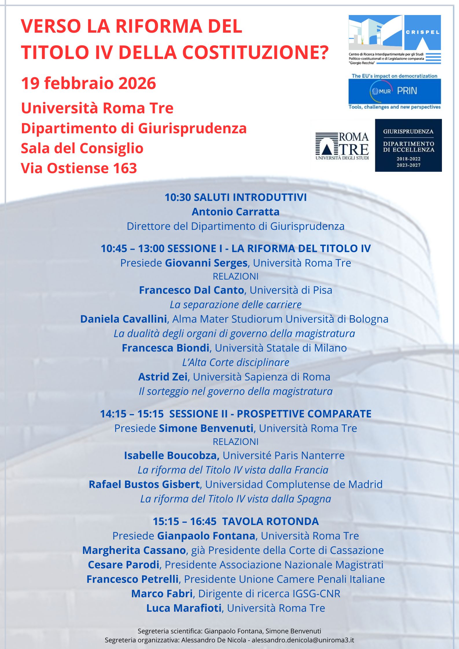 - 19.02.2026 – Link identifier #identifier__2654-1Verso la riforma del Titolo IV della Costituzione?